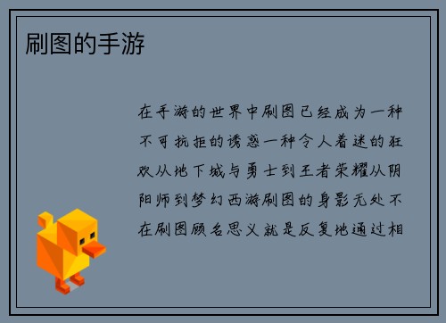在手游的世界中,刷图已经成为一种不可抗拒的诱惑,一种令人着迷的狂欢。从《地下城与勇士》到《王者荣耀》,从《阴阳师》到《梦幻西游》,刷图的身影无处不在。